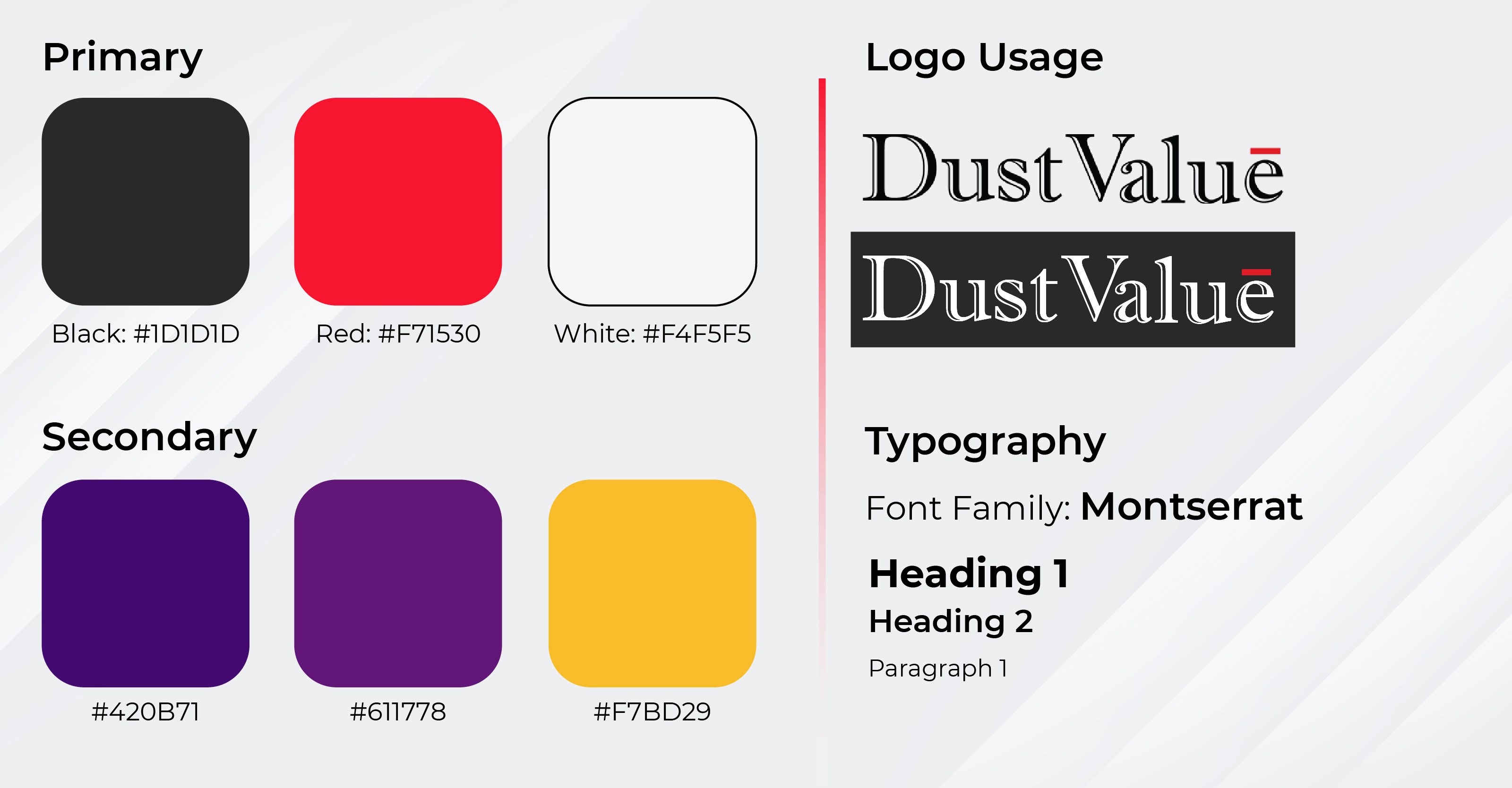 Talking about our logo, it is the visual cornerstone of the Dust Value brand. We maintain a consistent and respectful use of our logo, which is vital for reinforcing our brand identity.